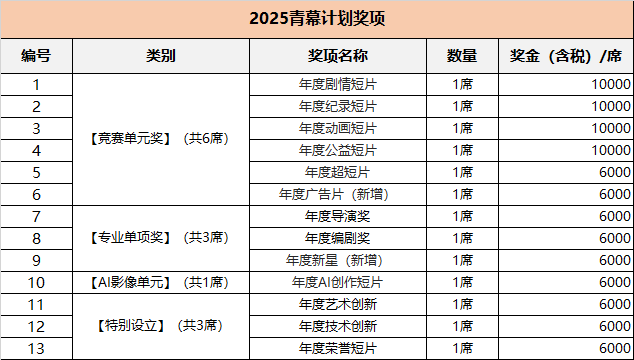 2025青幕打算从竞赛单位报名日期为2025年 8月26日-10月10日。2025搜狐青幕打算评审流程分为初审,复审,终审三个阶段,初审由影评人、影视自卑V构成评审团。复审、 终审由出名导演、影视行业资深从业人员构成的业界评审以及学术权势巨子人士及传授专家构成的学界评审,通过公允公开的评流程,卑沉每一位创做者的做品,激励青年导演们的正在短片的篇幅内摸索叙事的可能。